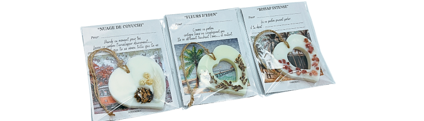 Une fabrication artisanale et des fragrances naturelles à suspendre ou à faire fondre. Signature Made in France