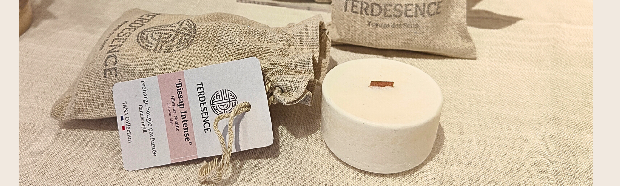 Rafraîchissez votre bougie Terdesence en réutilisant votre pot élégant avec nos recharges artisanales de bougies parfumées, disponibles dans vos fragrances préférées. Faciles à insérer, nos recharges pour bougie sont confectionnées à la main dans nos ateliers, assurant non seulement la continuité de votre expérience olfactive mais aussi un geste respectueux de l'environnement.