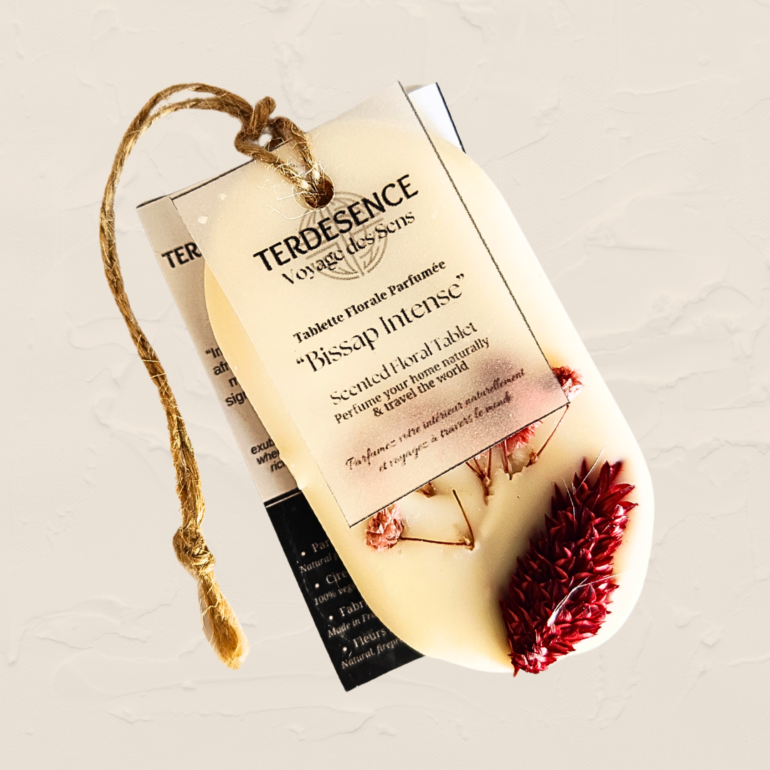 La tablette florale parfumée à message Bissap Intense associe la fraîcheur acidulée de l’hibiscus africain à la délicatesse d’un message personnalisé, pour créer un cadeau à la fois sensoriel, attentionné et porteur de sens.