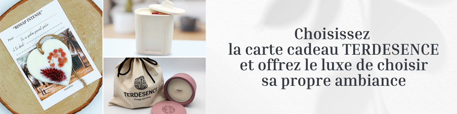 La carte cadeau Terdesence est une invitation à explorer un univers où chaque senteur, produit, évoque une émotion, un souvenir, une atmosphère.
