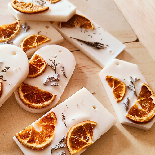 Explorez nos tablettes florales parfumées, coulées à la main, élaborées à partir de cire végétale, de parfums naturels de Grasse et de fleurs séchées.