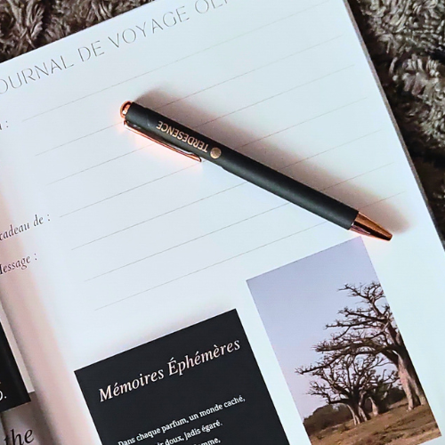 Pratique et élégant, ce stylo est parfait pour noter vos pensées et souvenirs dans le livre 'Voyage des Sens', tout en reflétant notre engagement envers la qualité.