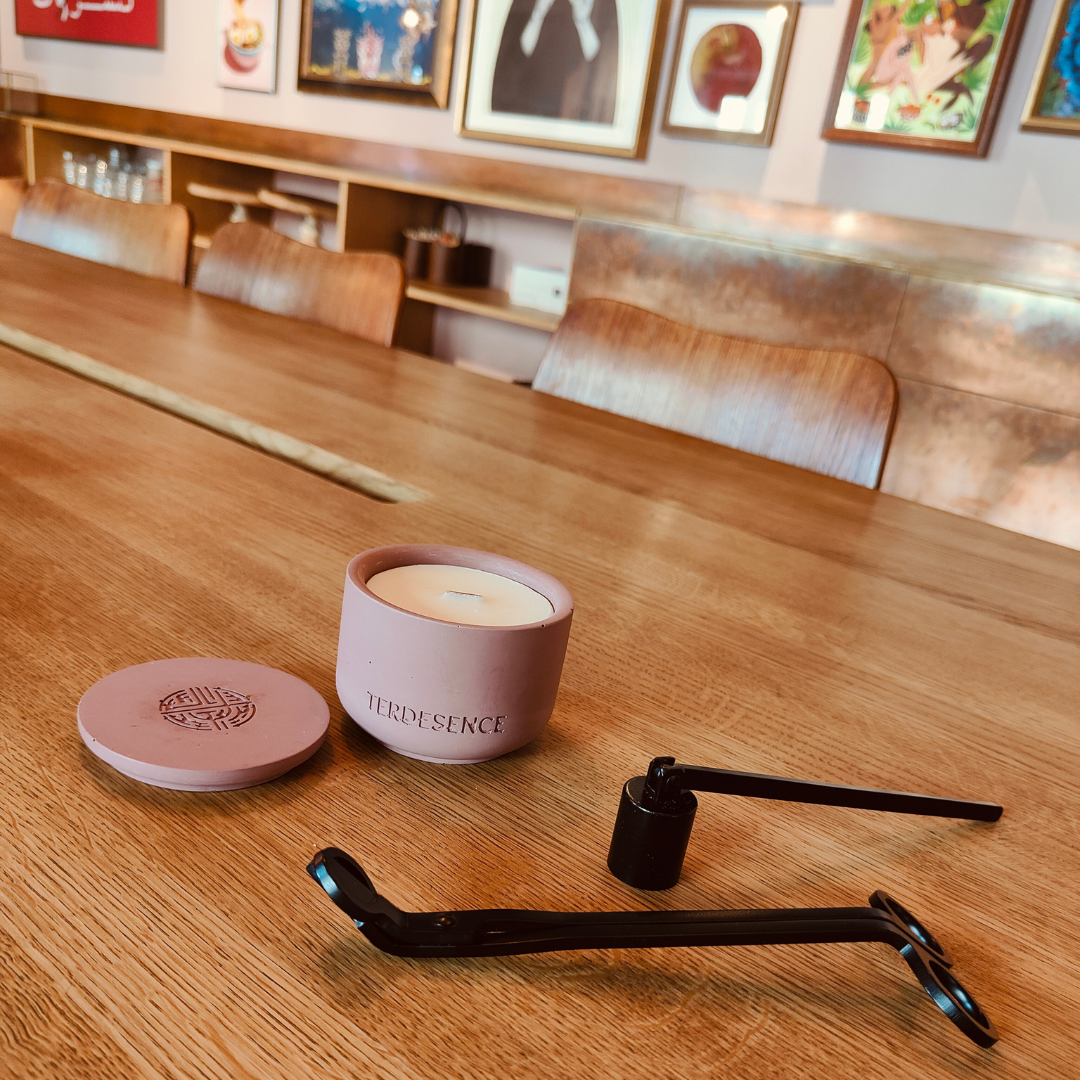 Chaque instant devient un rituel avec nos bougies Terdesence, rehaussées par des accessoires conçus pour perfectionner et prolonger votre expérience.
