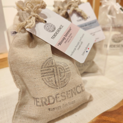 Intégrée dans un pochon en coton personnalisé et réutilisable, chaque recharge pour bougie ravive le parfum unique du bissap, invitant à un voyage renouvelé à travers les traditions et la fraîcheur africaines, dans un écrin de convivialité et de chaleur partagée.