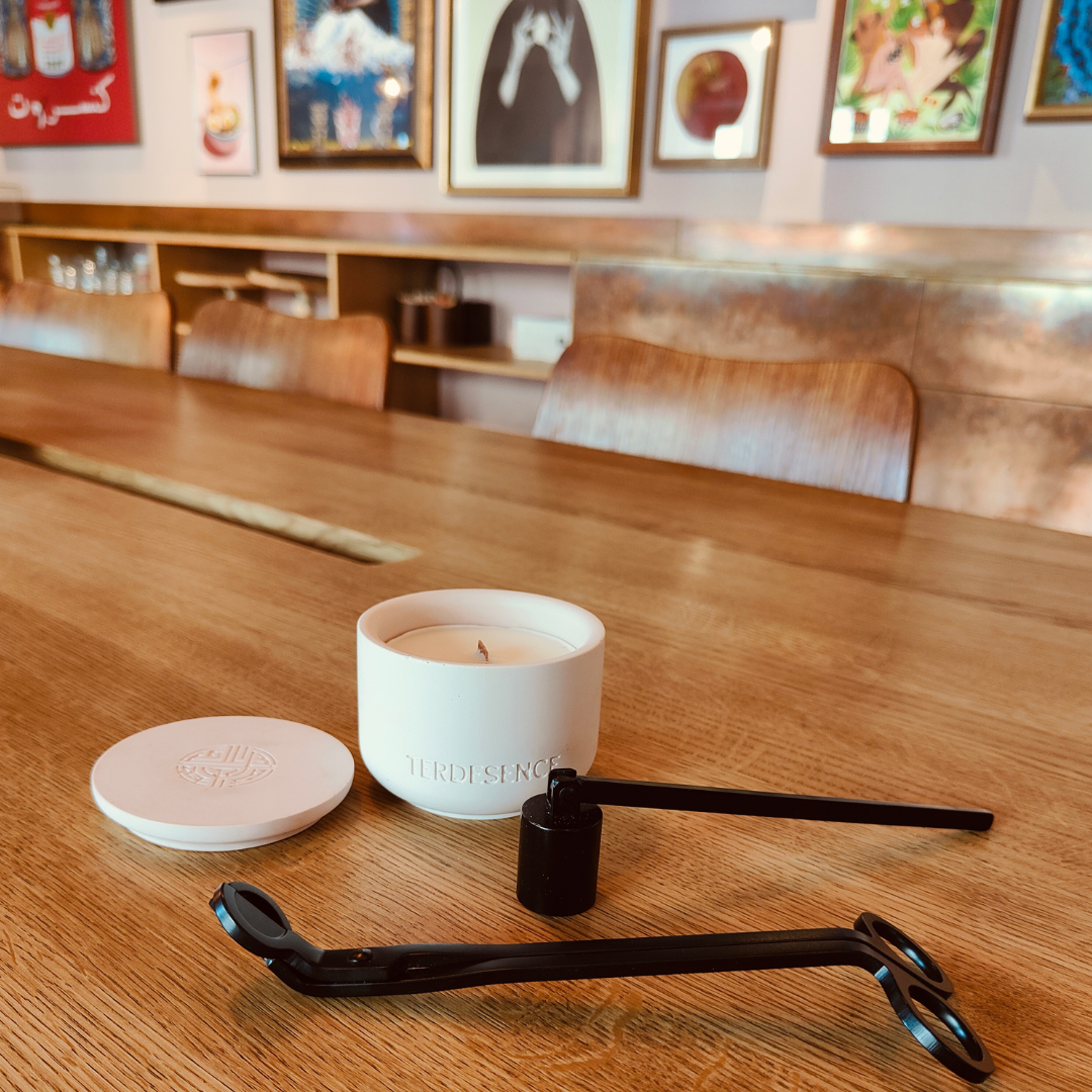 Chaque instant devient un rituel avec nos bougies Terdesence, rehaussées par des accessoires conçus pour perfectionner et prolonger votre expérience.